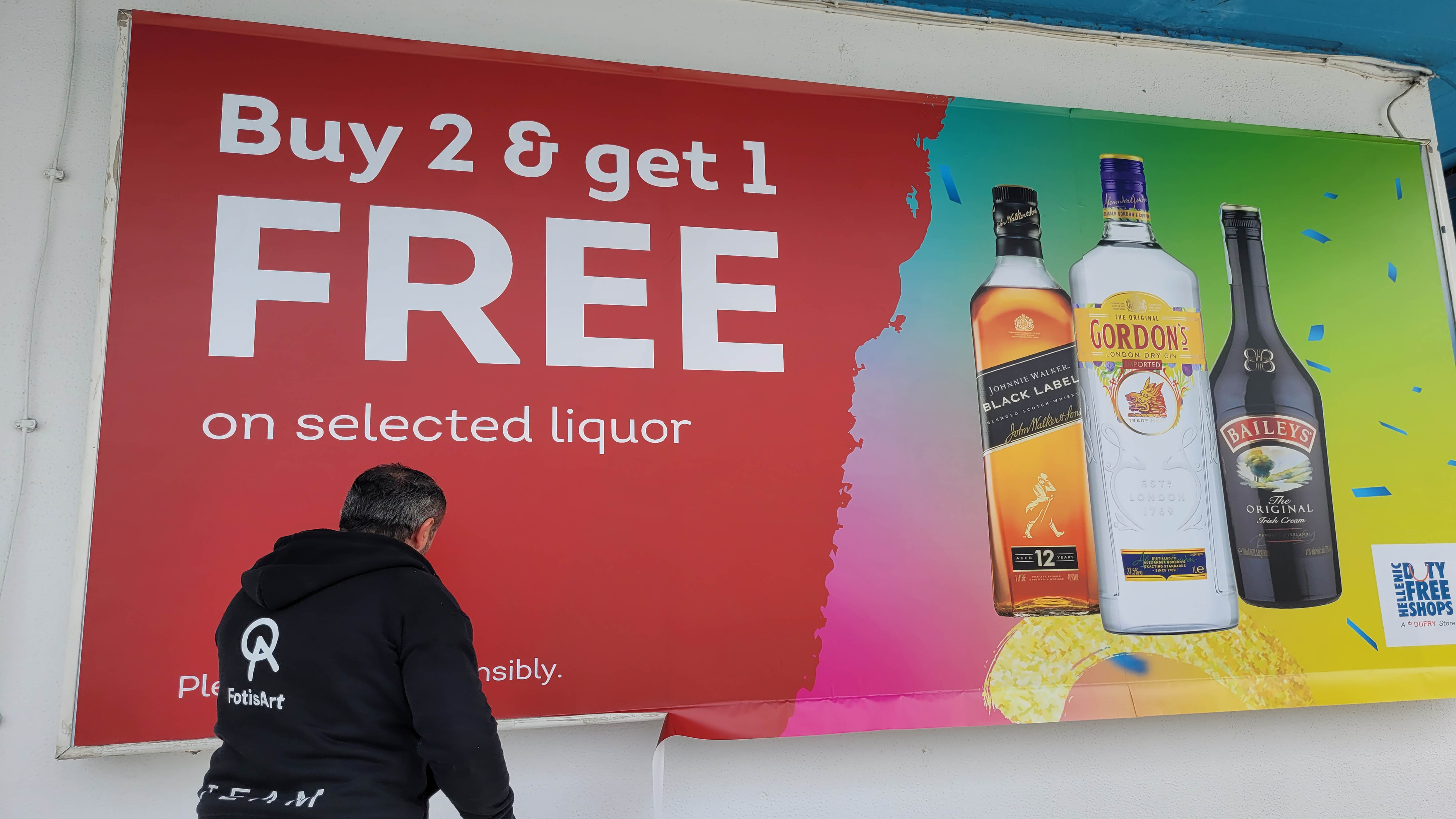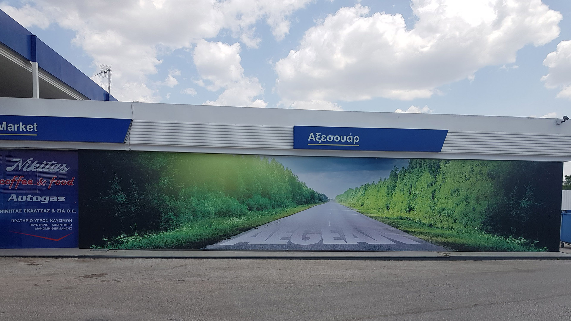 Εκτυπώνουμε σε μια μεγάλη γκάμα υλικών όπως αυτοκόλλητο, γυαλιστερό ή ματ, σε πανί, σε διάτρητο, σε μουσαμά με μελάνια αντοχής